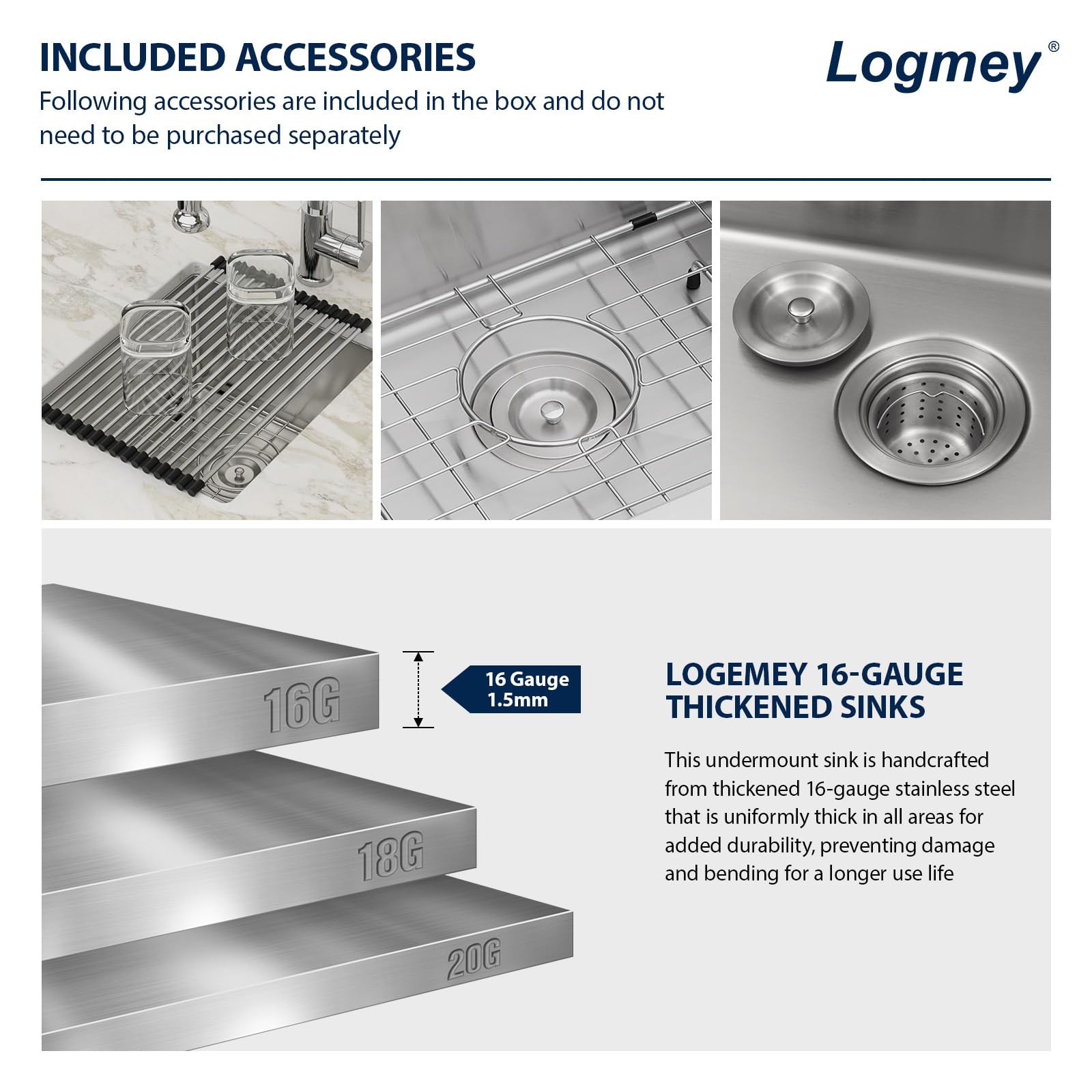 • SOLID CONSTRUCTION: Logmey undermount bar sink is constructed of heavy duty 16 gauge SUS304 stainless steel. Stainless Steel kitchen sink with commercial-grade brushed finish resists dents and scratches, is easy to clean and has a long service life.
