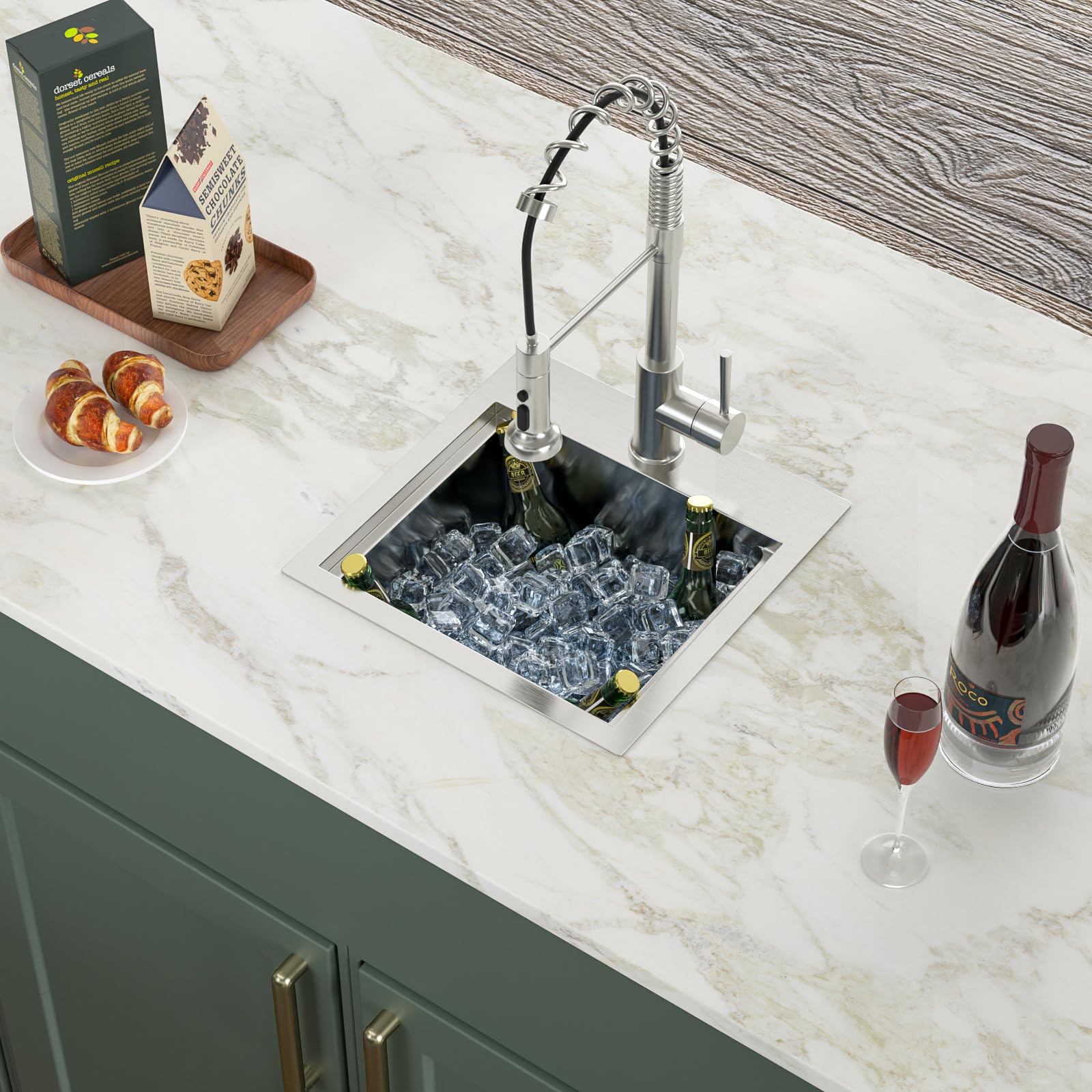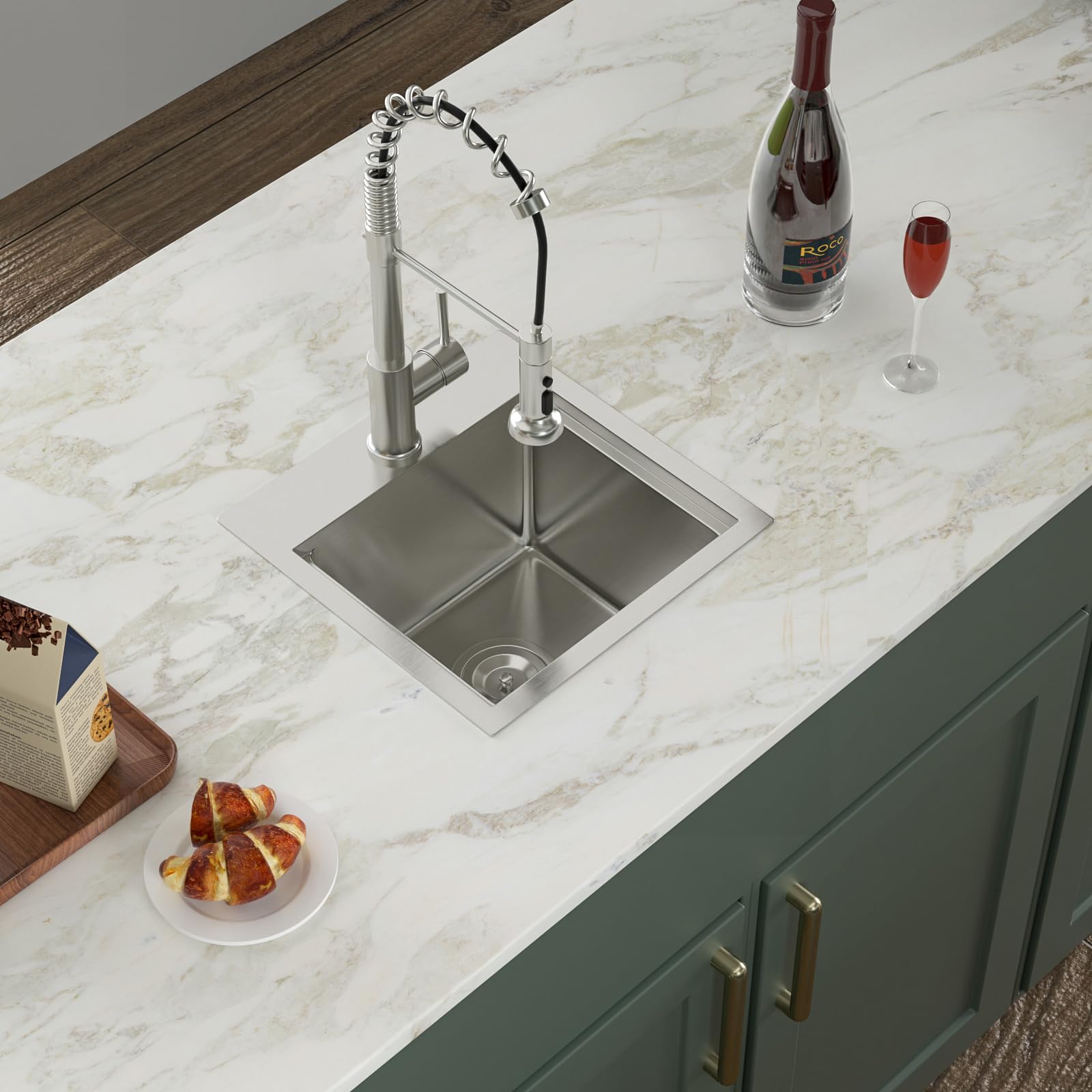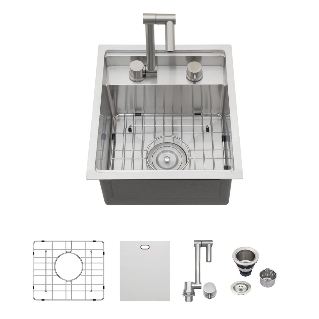 - This 15 inch kitchen bar sink as well as the accessories are made of 304 stainless steel.