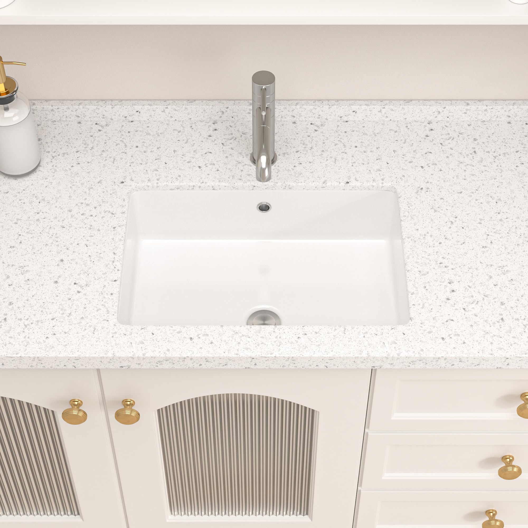 • Premium Porcelain Construction: Crafted from high-quality pure white porcelain ceramic, this sink is highly durable and resistant to stains, scratches, and chipping, ensuring long-lasting use and easy maintenance.