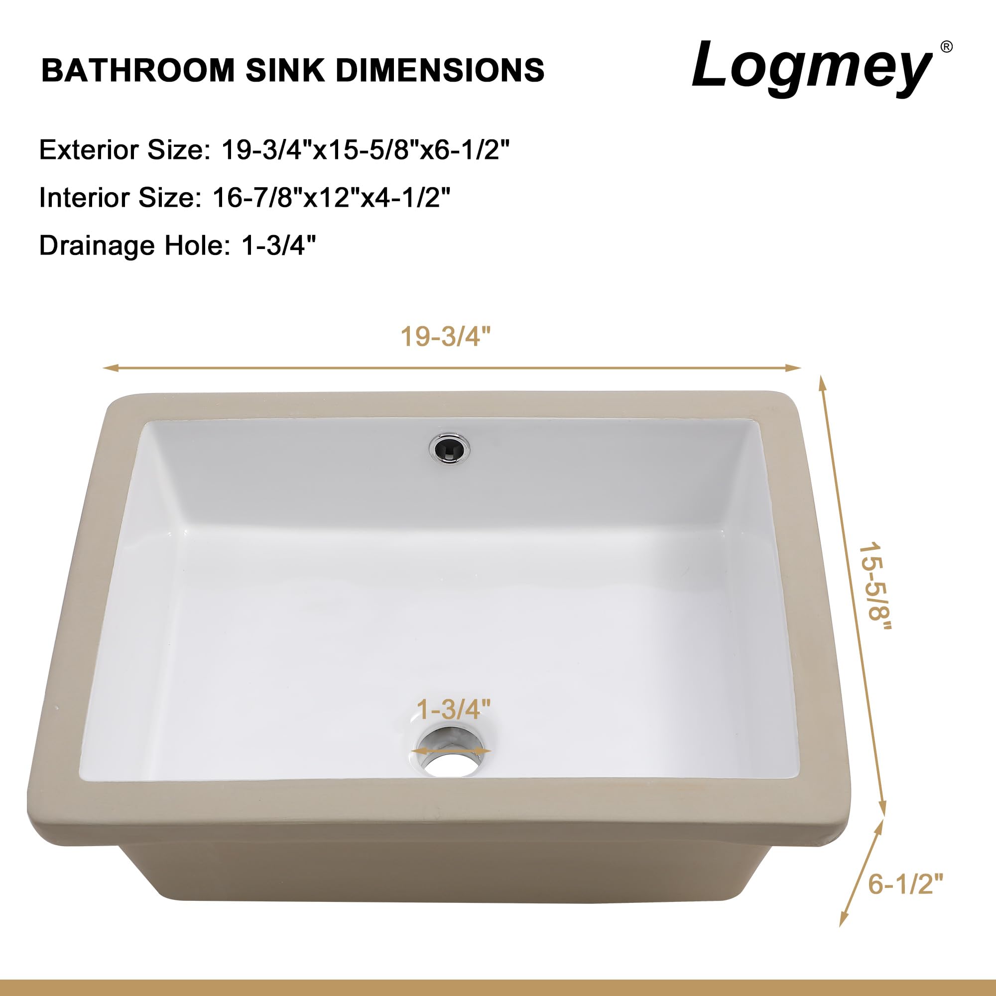 Logmey Rectangular Undermount Bathroom Vessel Sink