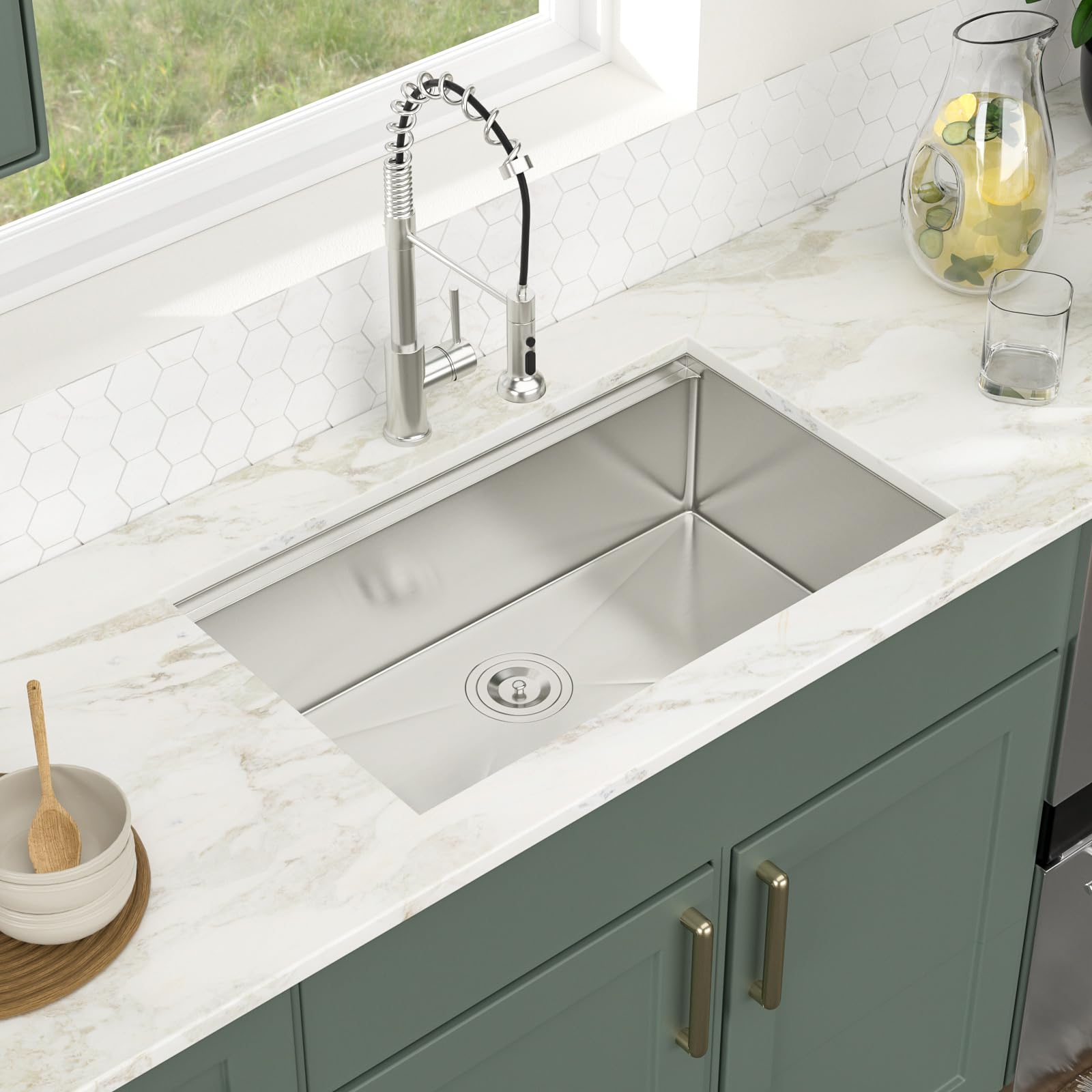 - High Quality Material: This 32 undermount Kitchen sink is constructed with dent-resistant SUS304 Stainless Steel 16-gauge for superior strength and durability.Commercial grade brushed finish to make the surface scratch resistance-easy to clean and long-lasting.