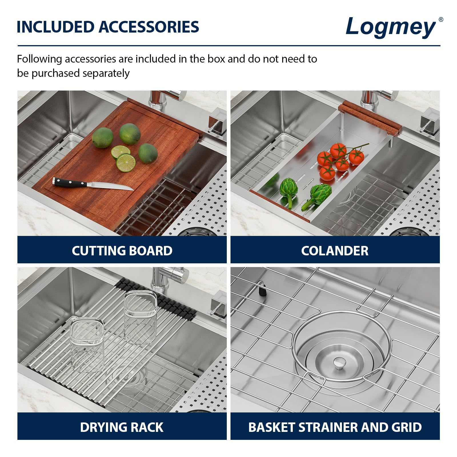 workstation sinkLogmey drop in workstation sink provide following accessories: