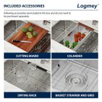 - What’s in Package:a 33 inch stainless steel undermount sink, cutting board& Colander, roll-up dish drying rack,drain assembly, bottom rinse grid, cutout template and installation instruction.We recommend that you refer to the product dimensional drawings and cut the countertop after you receive your sink to ensure an accurate installation.