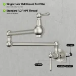 - The pot filler faucet comes with an NPT 1/2″ connecting thread, specifically designed to fit US standards. The installation flange provides stability, ensuring a secure and reliable connection.