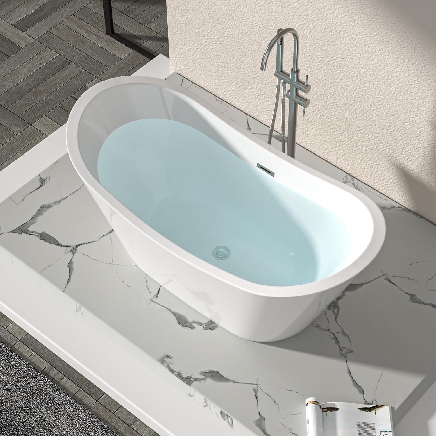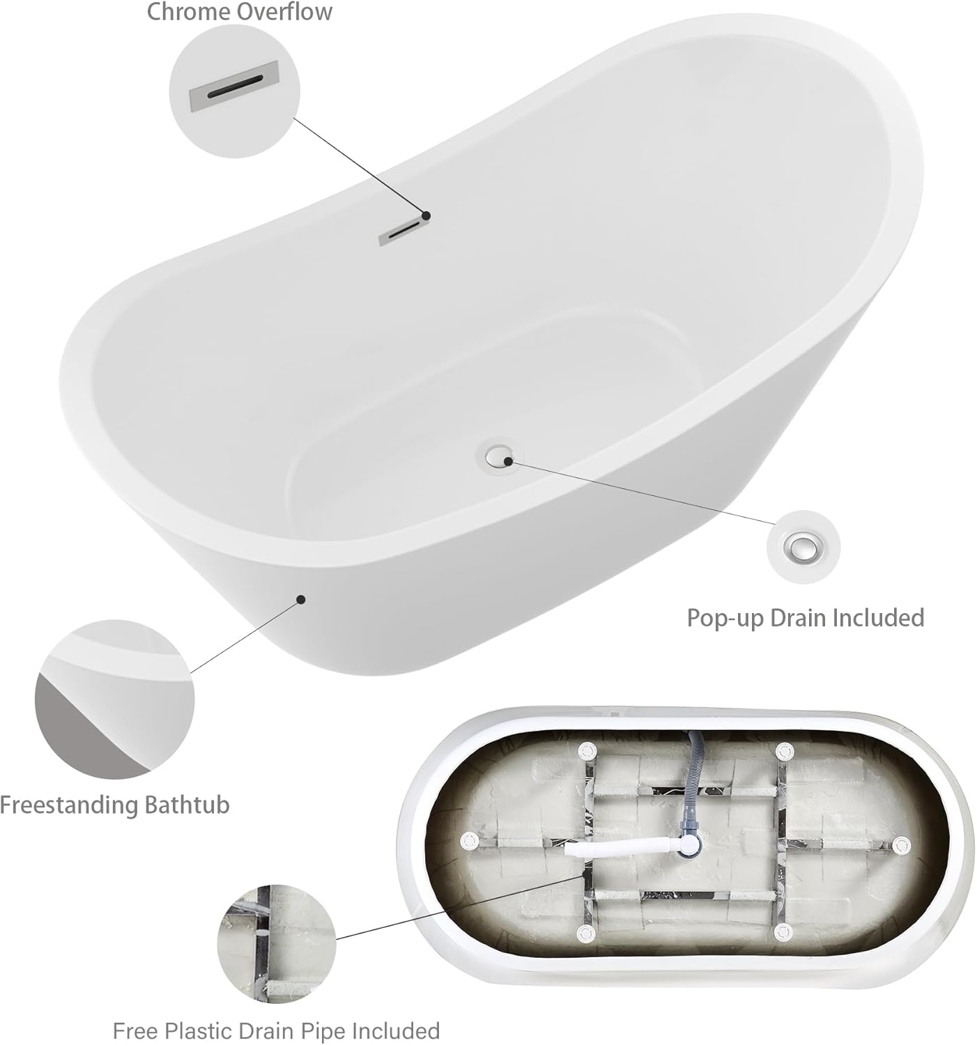 - Elegant & Versatile Design: The white acrylic finish, paired with the drain and overflow assembly, adds a touch of elegance. It seamlessly fits into both classic and modern bathroom styles, enhancing the overall decor.