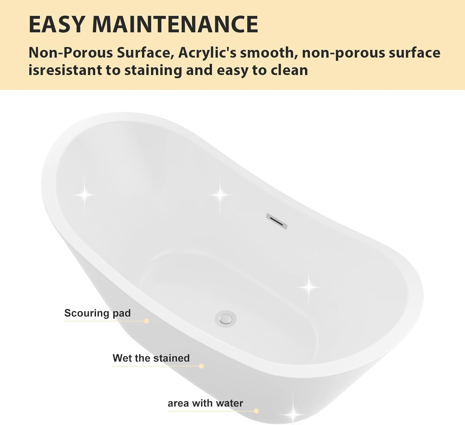 - Easy to Install and Maintain: Equipped with installation instructions, the simple installation process gets your tub ready quickly. Its smooth surface makes cleaning effortless, saving you time and keeping the tub looking fresh.