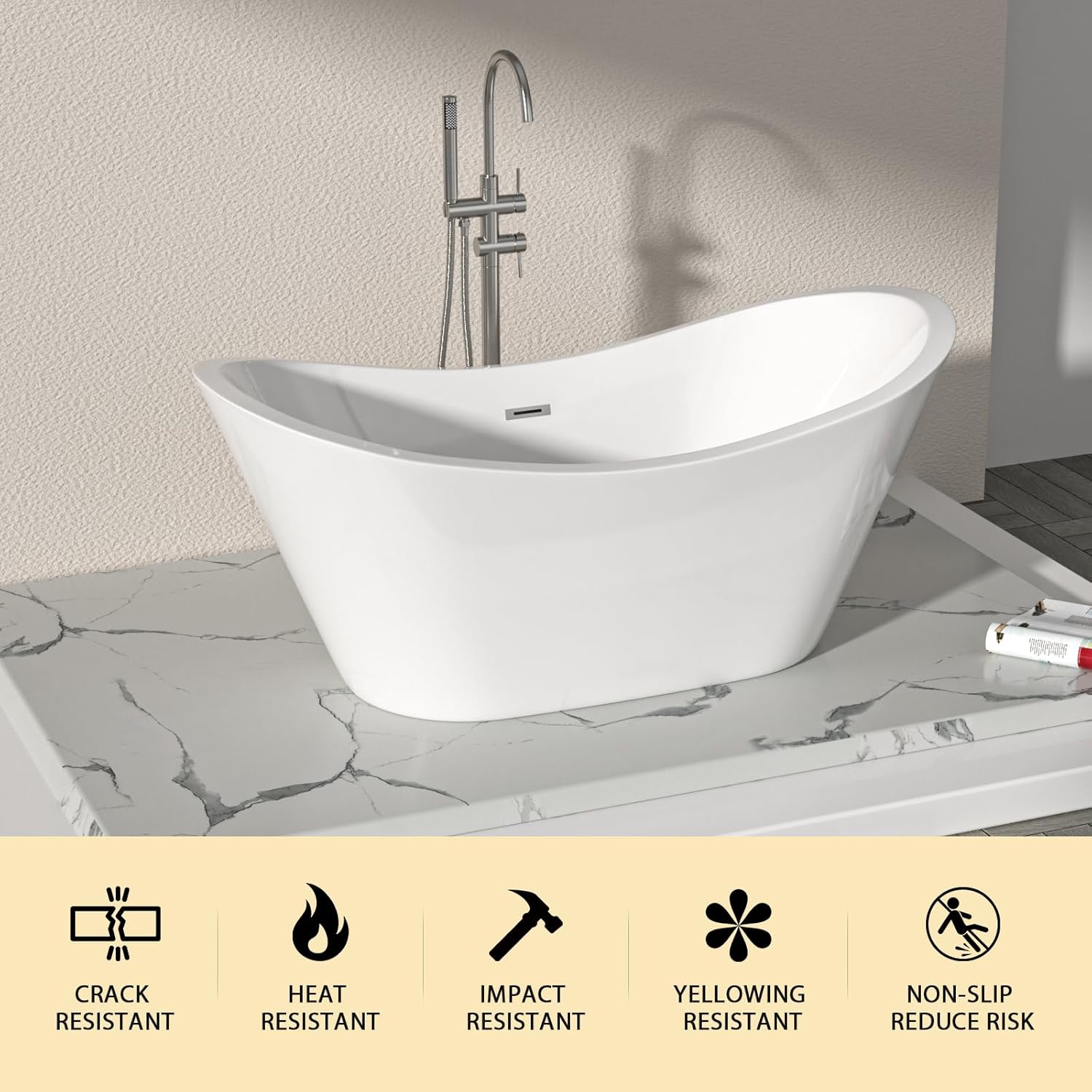 - Durable Acrylic Construction: Crafted from high-quality acrylic, it’s resistant to scratches and stains. This ensures the tub stays in great condition, maintaining its appeal over time with daily use.