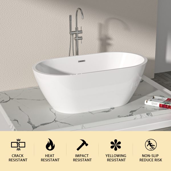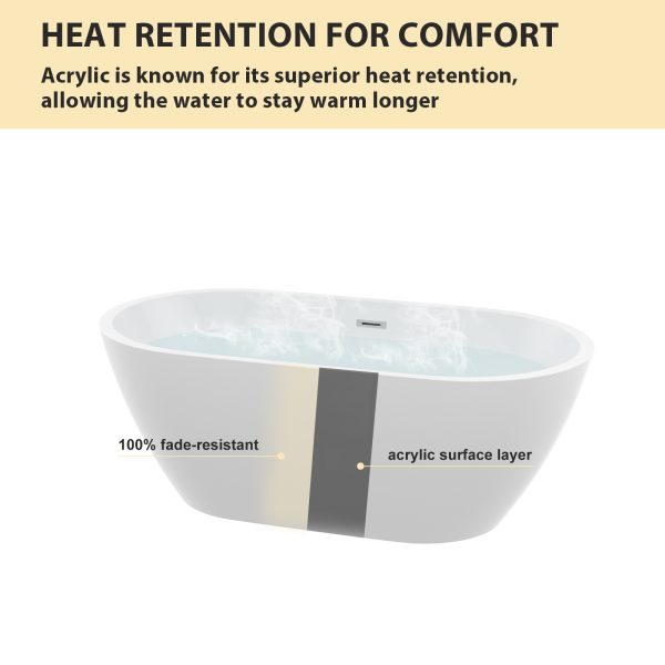 - Elegant & Versatile Design: The white acrylic finish, paired with the drain and overflow assembly, adds a touch of elegance. It seamlessly fits into both classic and modern bathroom styles, enhancing the overall decor.