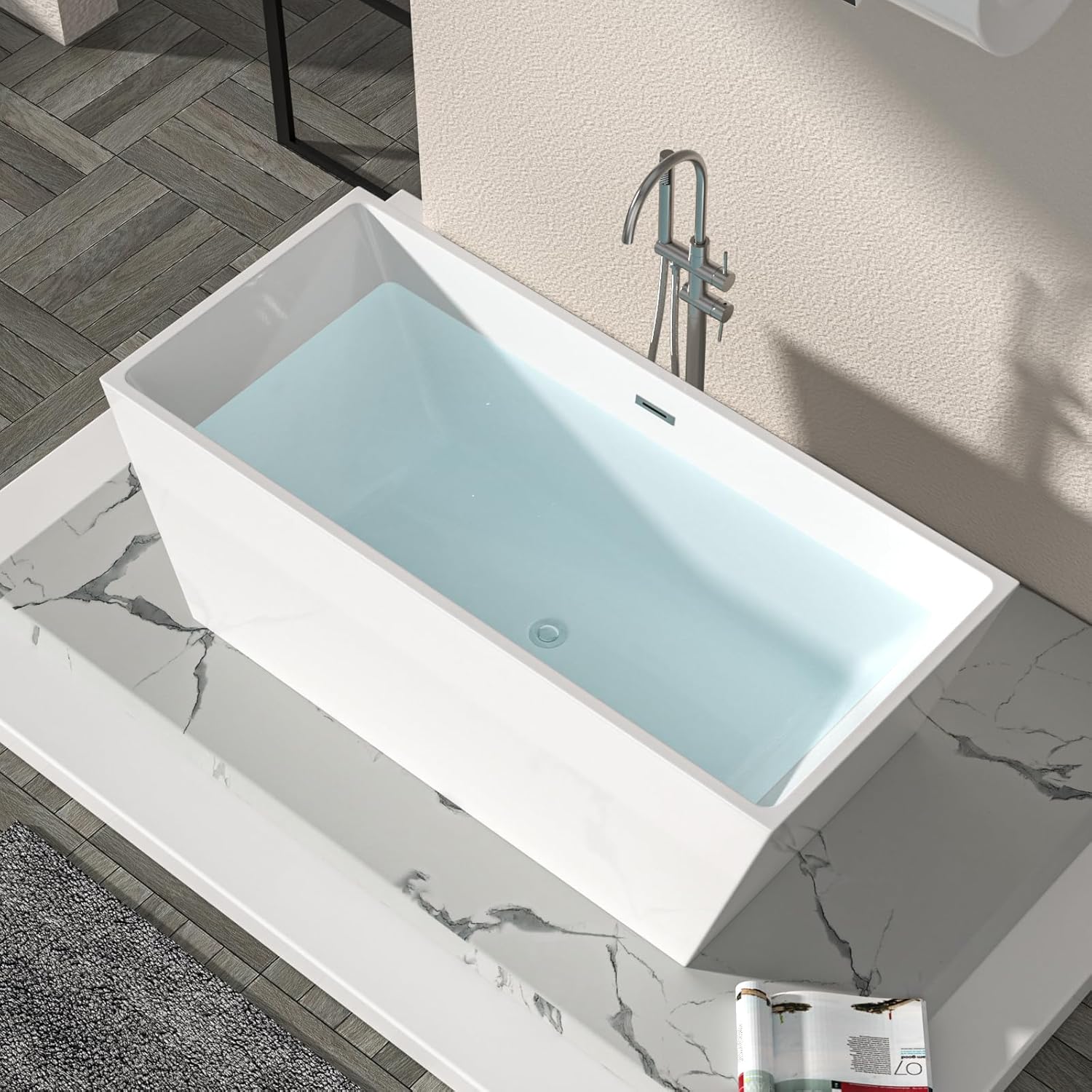 - Durable Acrylic Construction: Crafted from high-quality acrylic, it’s resistant to scratches and stains. This ensures the tub stays in great condition, maintaining its appeal over time with daily use.