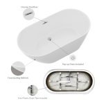 - Elegant & Versatile Design: The white acrylic finish, paired with the drain and overflow assembly, adds a touch of elegance. It seamlessly fits into both classic and modern bathroom styles, enhancing the overall decor.
