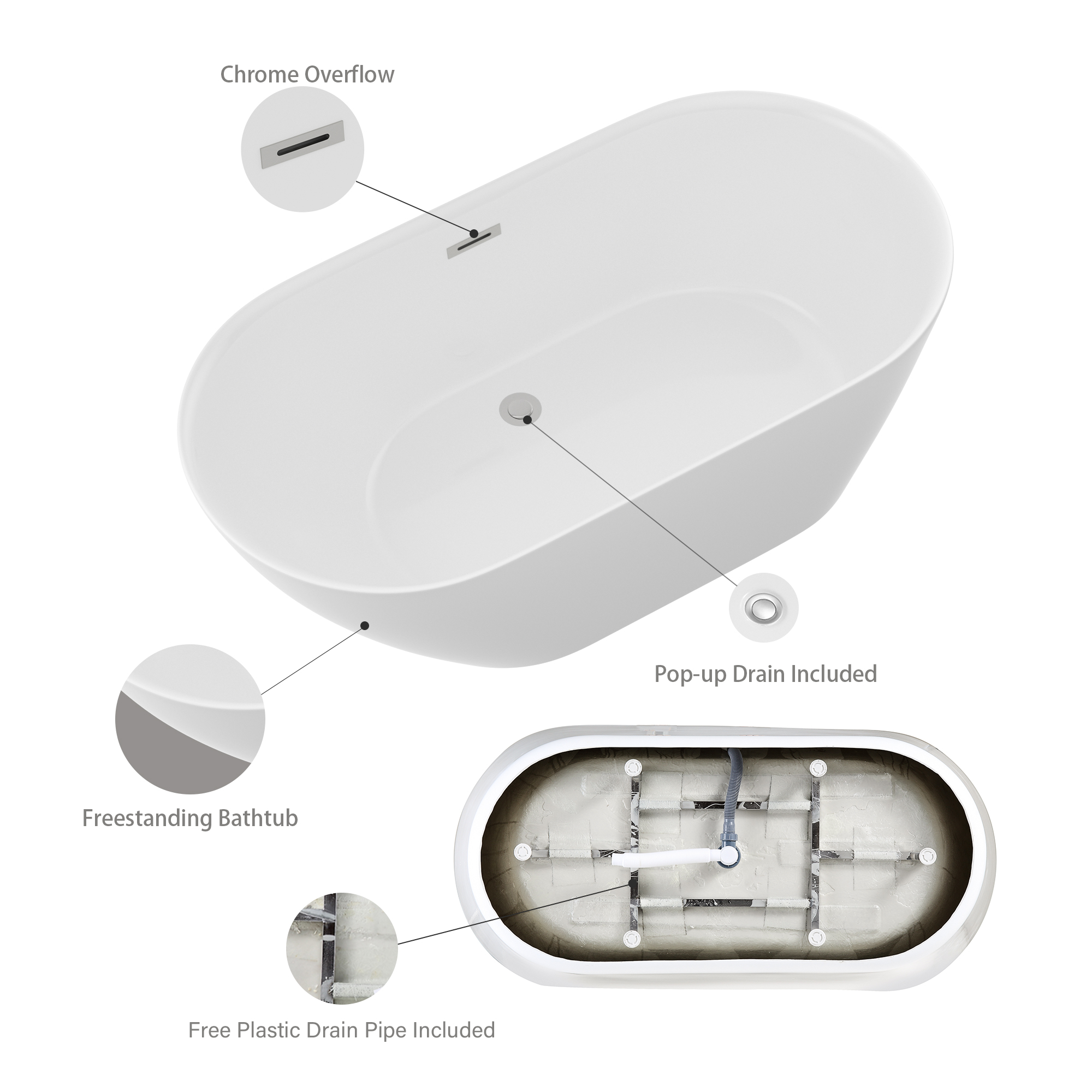 | Included Components | Bathtub, Drain, Overflow Assembly, Installation Manual |