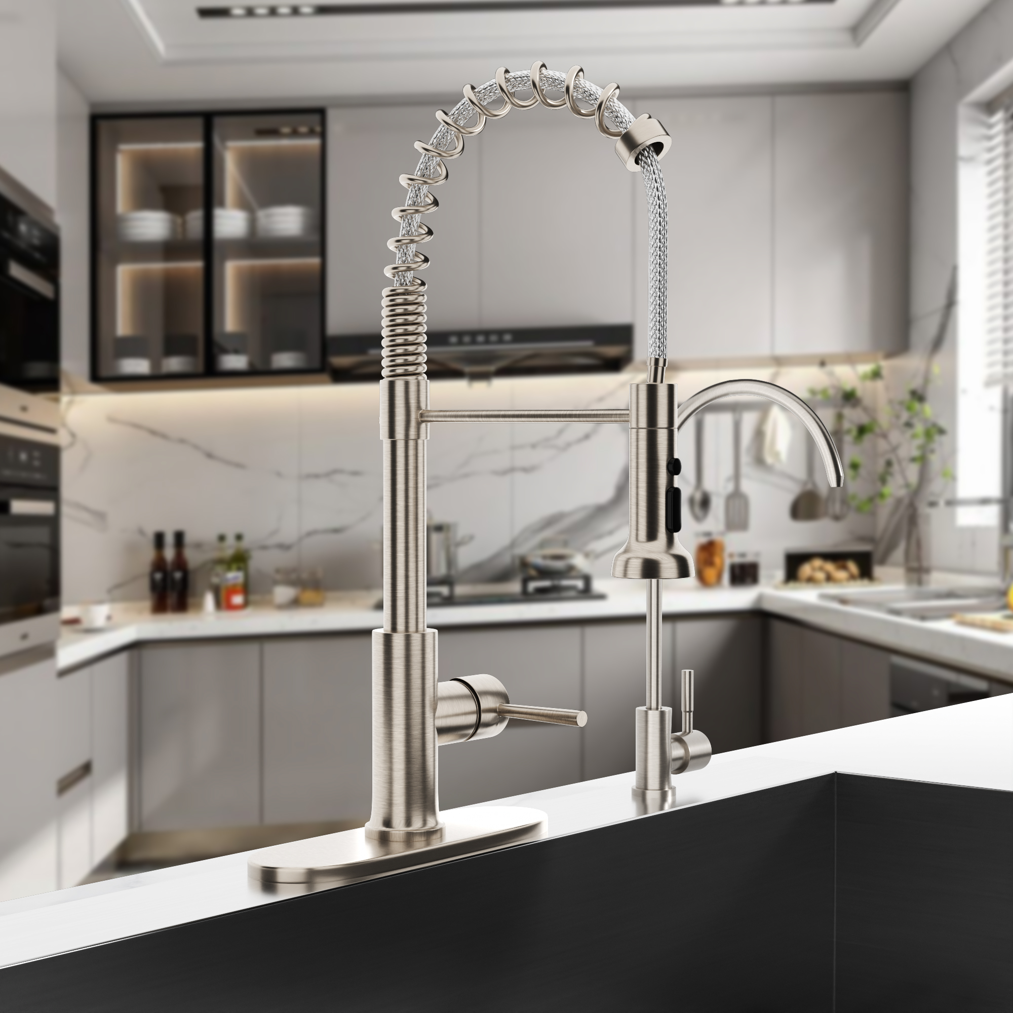 - 3 Water Modes: Pull-Out spray head with toggle button to select spray or stream or pause modes conveniently in the palm of your hand.