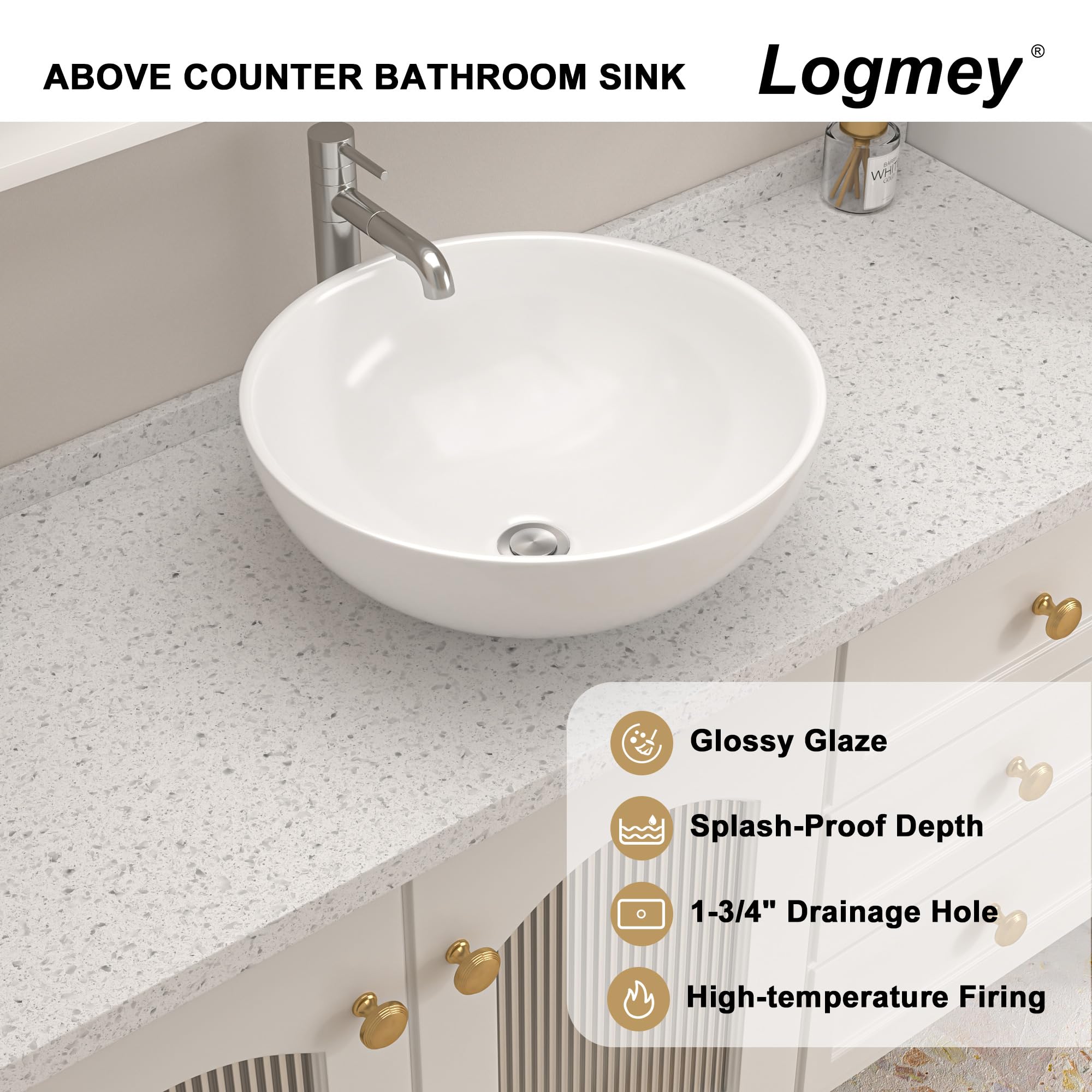 Logmey Ceramic Round Bathroom Vessel Sink