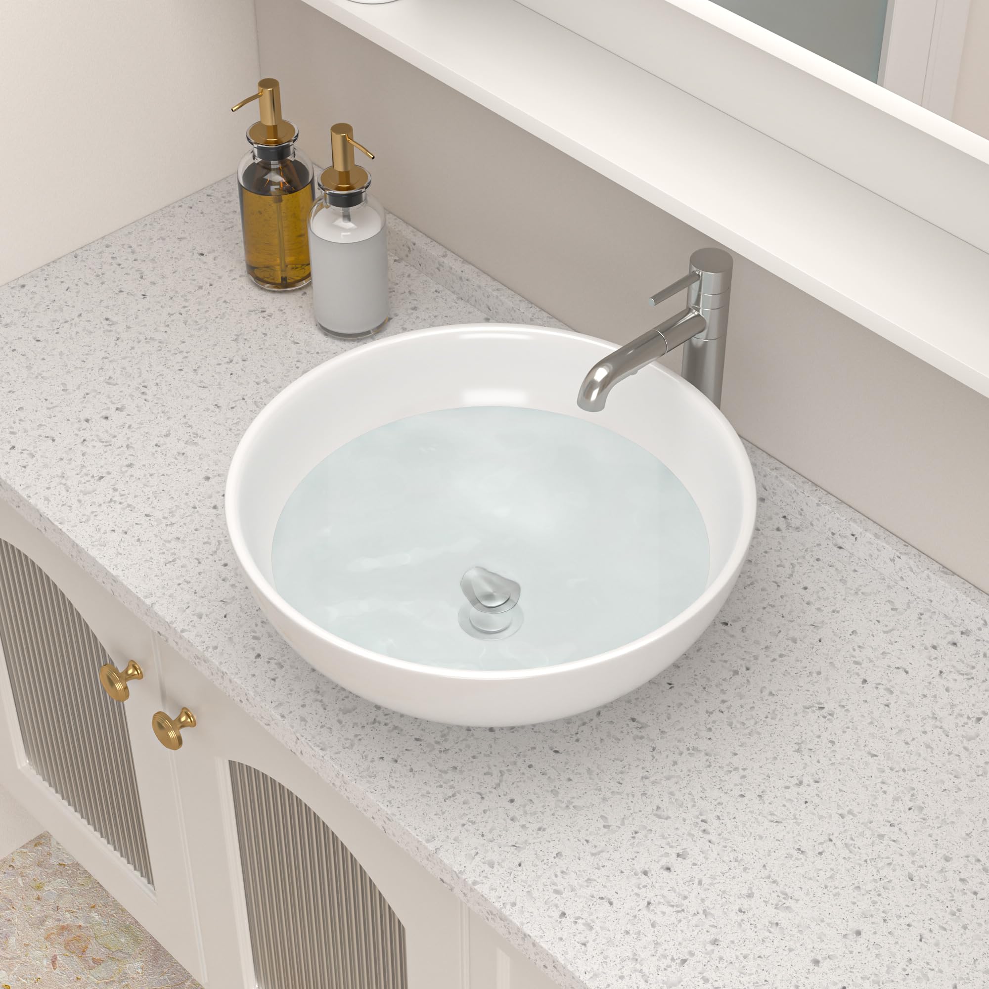 - Above counter installation: Easy to install, with standard size(1 3/4 inch) drain holes, adaptable to most of the drain on the market.( Pop-up drain is not included).